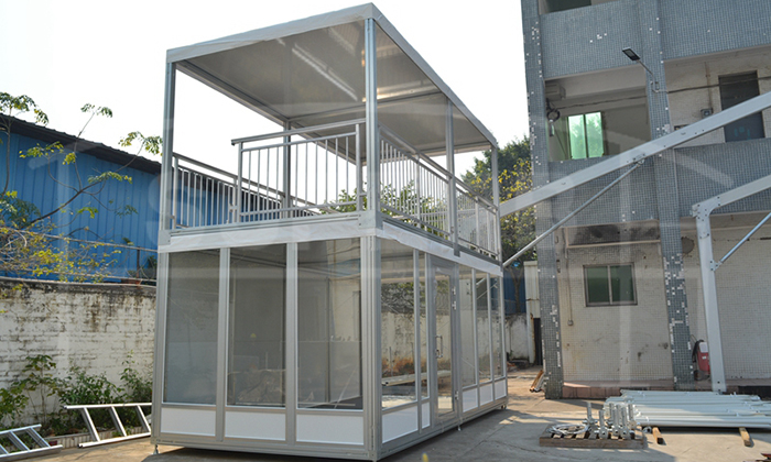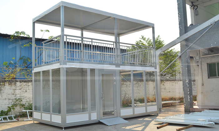 雙層篷房也叫兩層篷房。在同一地面面積內(nèi)提供雙層活動(dòng)空間,大空間,二層視野更佳,特色豪華時(shí)尚。還可以為客戶創(chuàng)造更好的視覺空間。無論是在節(jié)日慶典、會(huì)議和體育活動(dòng)中使用,如足球、高爾夫、網(wǎng)球、馬術(shù)、賽馬或任何其他類型的賽事。