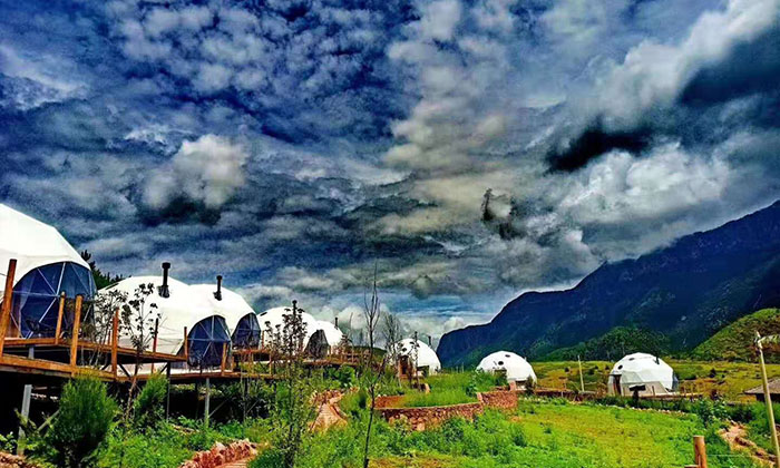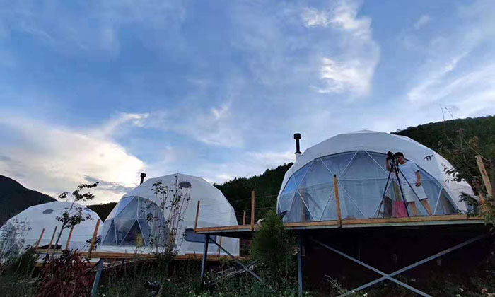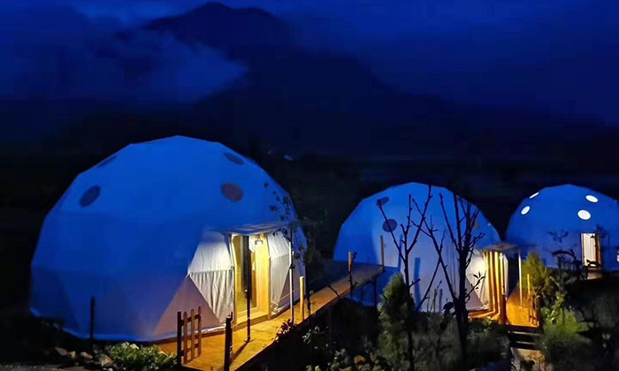 對于帳篷酒店的設計,主要涉及到其選址及布局、風貌設計、空間容量設計和安全結構設計,好來居可以根據(jù)各種復雜地形提供解決的搭建。