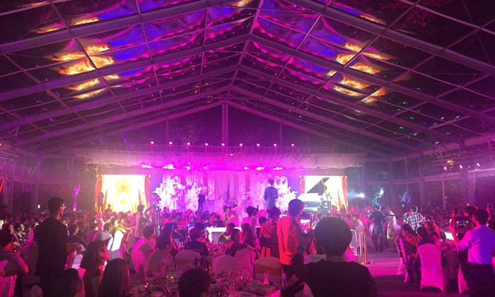 婚慶篷房作為一種在戶外搭建的大帳篷,在歐美非常流行,因?yàn)槠跁r(shí)尚,便捷,相比傳統(tǒng)的酒店式婚禮更實(shí)惠,還可以選擇自己喜歡的地方舉行浪漫的婚禮。