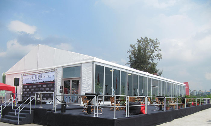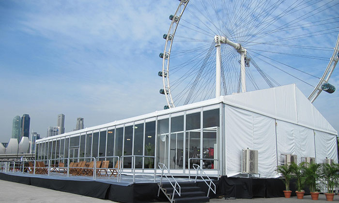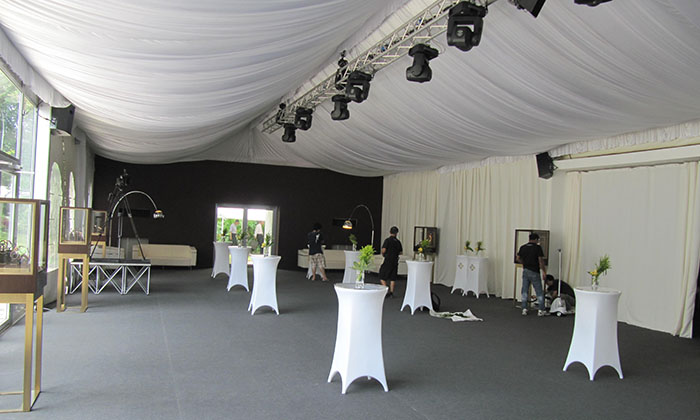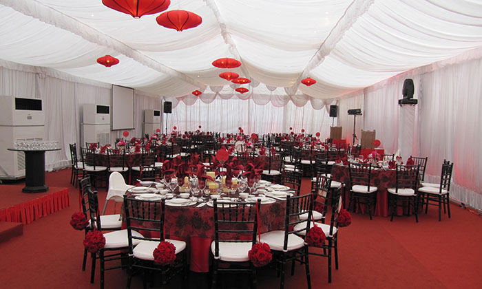 我司嚴(yán)格執(zhí)行ISO9001的質(zhì)量管理體系,確保不良產(chǎn)品的最小化及客戶滿意度的最大化。我們的的主要產(chǎn)品包括可移動的模塊化鋁合金支架篷房,有不同風(fēng)格的篷房及裝飾可供選擇,篷房跨度從3米到60米。此外,還包括錐頂篷房和吊頂篷房,以及篷房配件,如照明燈具、地板、空調(diào)、桌椅及其它用于篷房內(nèi)部的家具。篷房可廣泛應(yīng)用于大小型活動、婚慶、展會、體育、酒店、航空和工業(yè)等其它領(lǐng)域。篷房框架結(jié)構(gòu)為高強度鋁合金6061/T6型材,篷布為防水、阻燃的雙面PVC涂層聚酯纖維布,主體結(jié)構(gòu)風(fēng)載荷不少于100Km/h。