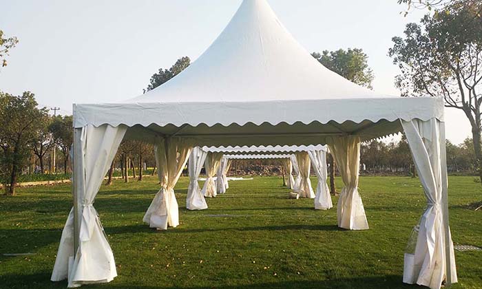 我司嚴格執(zhí)行ISO9001的質(zhì)量管理體系,確保不良產(chǎn)品的最小化及客戶滿意度的最大化。我們的的主要產(chǎn)品包括可移動的模塊化鋁合金支架篷房,有不同風格的篷房及裝飾可供選擇,篷房跨度從3米到60米。此外,還包括錐頂篷房和吊頂篷房,以及篷房配件,如照明燈具、地板、空調(diào)、桌椅及其它用于篷房內(nèi)部的家具。篷房可廣泛應用于大小型活動、婚慶、展會、體育、酒店、航空和工業(yè)等其它領(lǐng)域。篷房框架結(jié)構(gòu)為高強度鋁合金6061/T6型材,篷布為防水、阻燃的雙面PVC涂層聚酯纖維布,主體結(jié)構(gòu)風載荷不少于100Km/h。