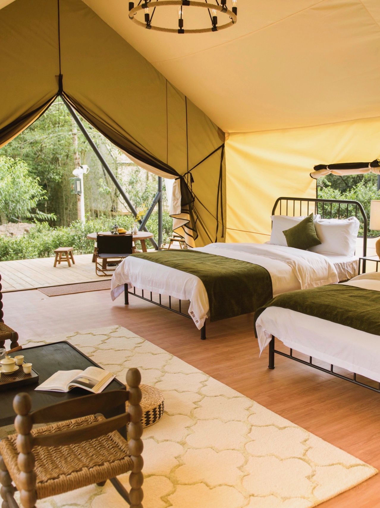 花都里·化屋度假營(yíng)地位于烏江源百里畫(huà)廊化屋景區(qū),營(yíng)地有野奢帳篷22個(gè),輕奢帳篷19個(gè)。