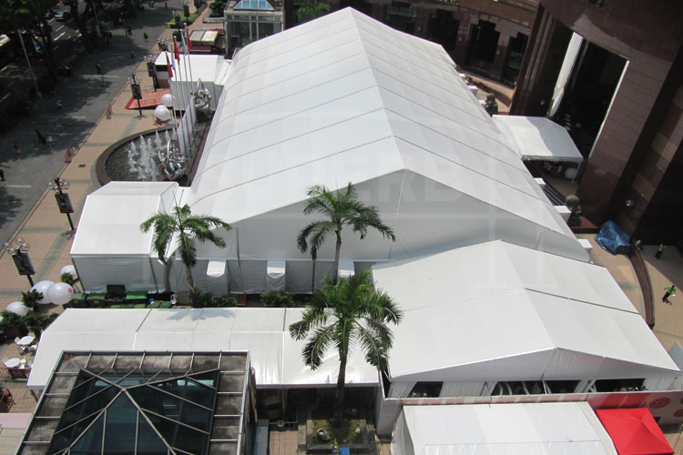 篷房源于歐洲,是一種新型的戶外活動(dòng)用臨時(shí)建筑,于拆裝靈活,儲(chǔ)運(yùn)輕便,被稱(chēng)之為“流動(dòng)房產(chǎn)”。篷房最基本主要構(gòu)成部分是高強(qiáng)度鋁合金加先進(jìn)的雙面涂層PVC合成纖維布,一般使用壽命有20年以上??癸L(fēng)8-12級(jí),承載300mm的積雪,不受到天氣因素的影響,可以在戶外長(zhǎng)時(shí)間投入使用。