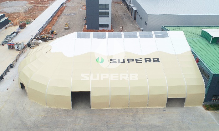 3,環(huán)保與可持續(xù)性:裝配式篷房在安裝過程中幾乎不產(chǎn)生建筑垃圾,且大部分材料可回收利用,符合現(xiàn)代環(huán)保理念。此外,其設(shè)計注重場地的最小破壞和資源的最優(yōu)利用,有利于保護生態(tài)環(huán)境。